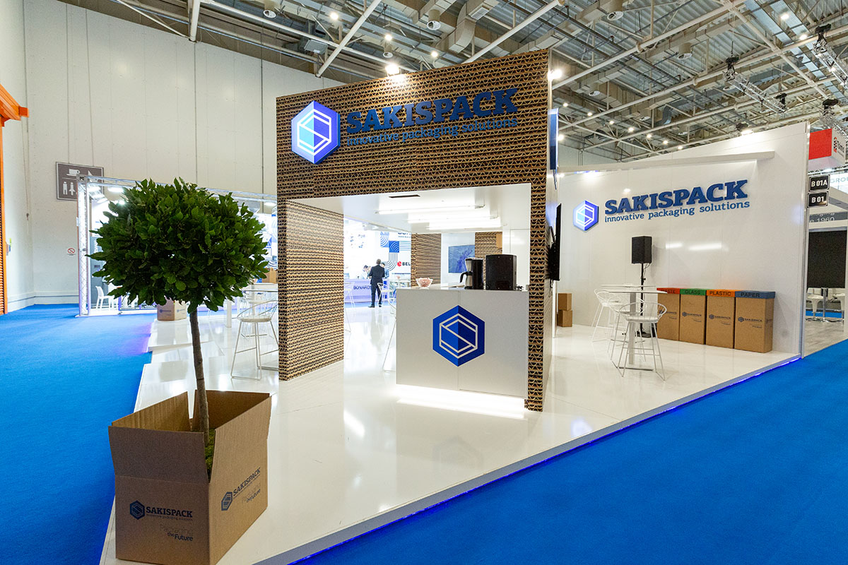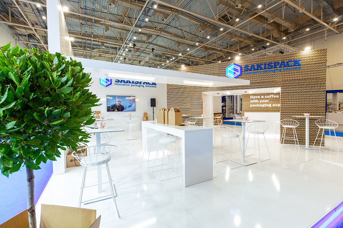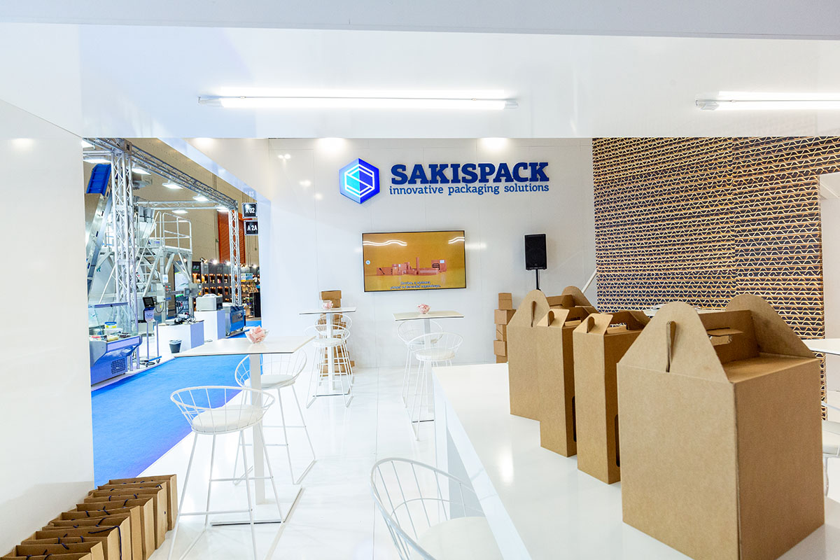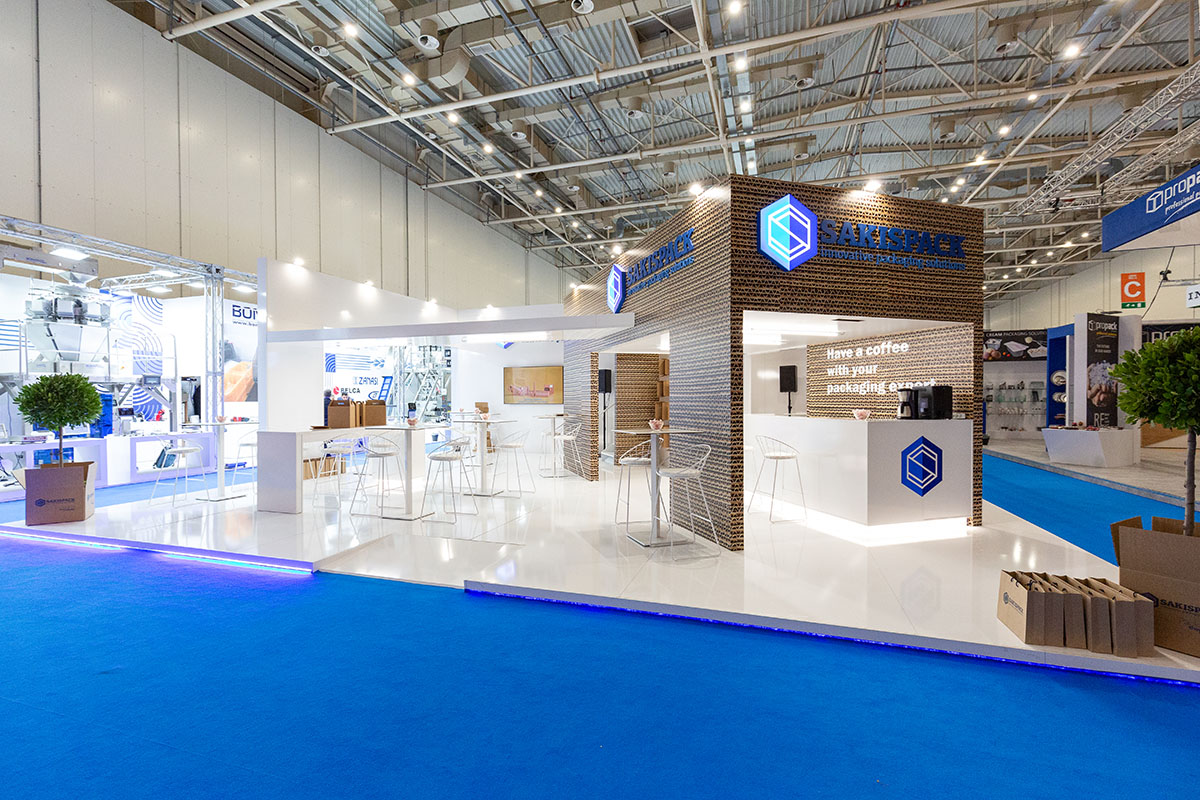 Μελέτη και κατασκευή διώροφου περιπτέρου για την συμμετοχή της εταιρείας Sakispack στην Έκθεση Food tech Globalpack 2023, στον εκθεσιακό χώρο Metropolitan Expo.