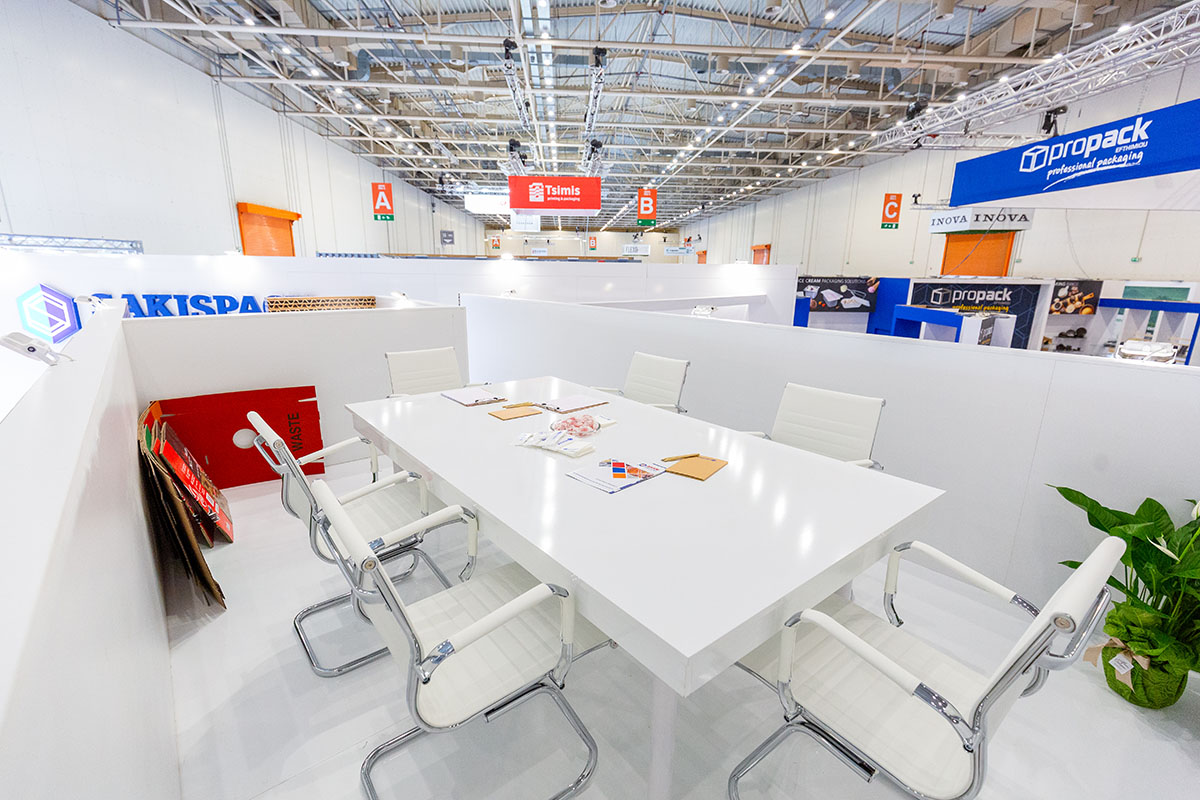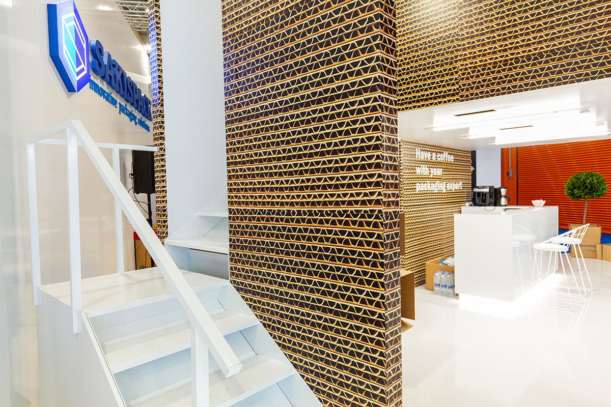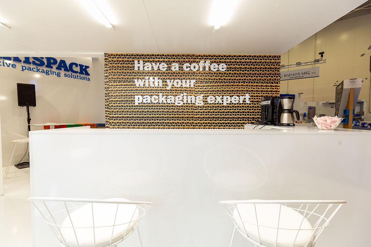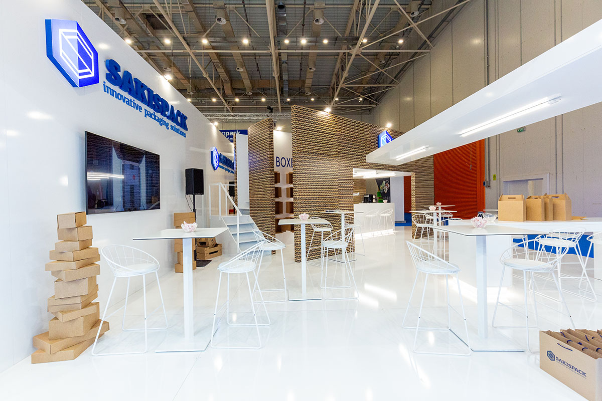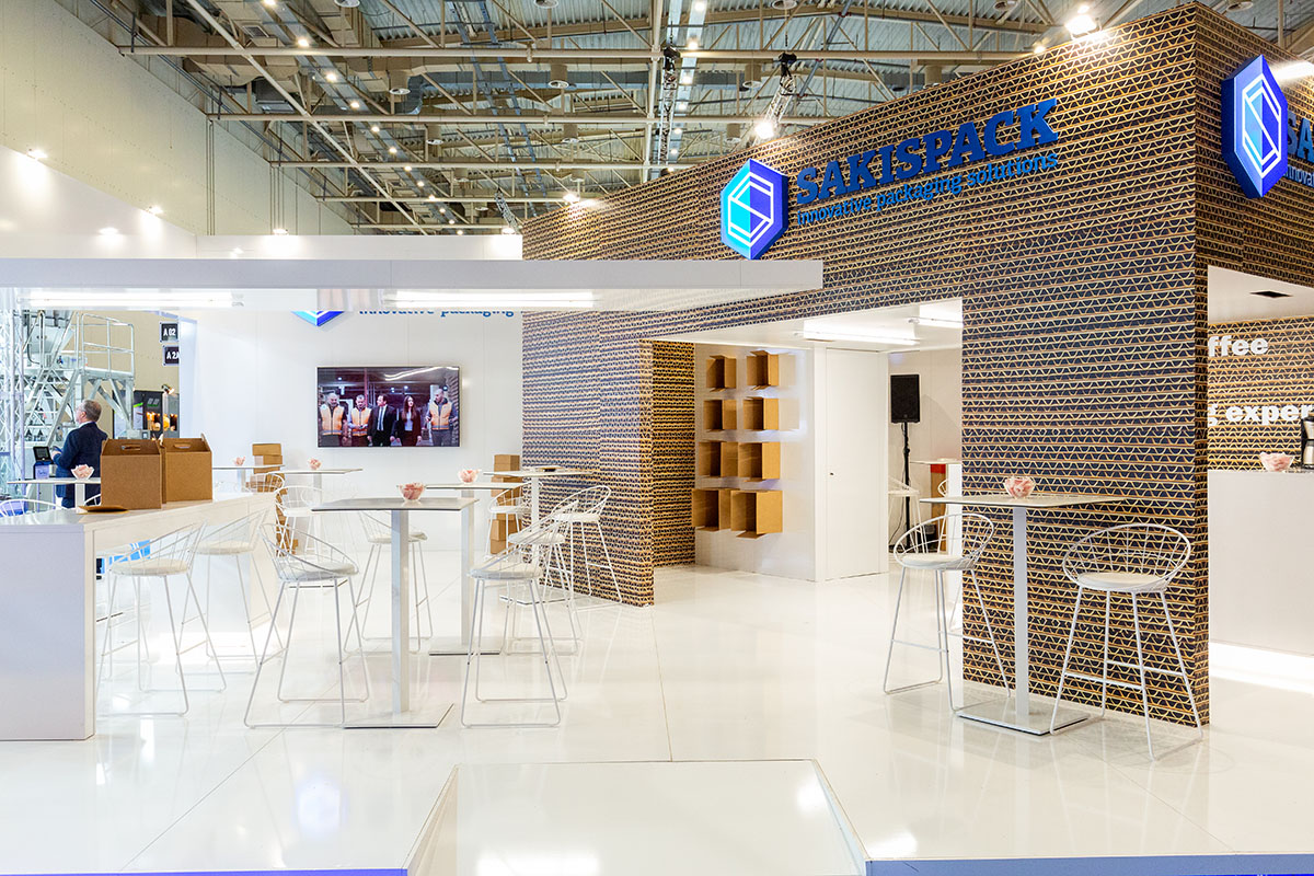Μελέτη και κατασκευή διώροφου περιπτέρου για την συμμετοχή της εταιρείας Sakispack στην Έκθεση Food tech Globalpack 2023, στον εκθεσιακό χώρο Metropolitan Expo.